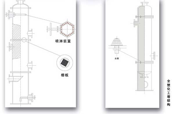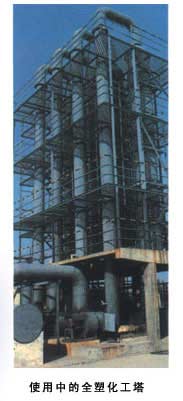 3.全塑化工塔的风荷、填料、喷淋水等载荷由塔体外钢架支承。