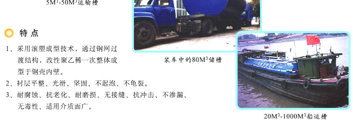 随着国内高速公路和航运的飞速发展危险品运输的要求日趋严格,在高速公路、大海、长江、内河上行驶的酸、碱运输车、船、使用钢塑复合产品,运输更安全可靠。
